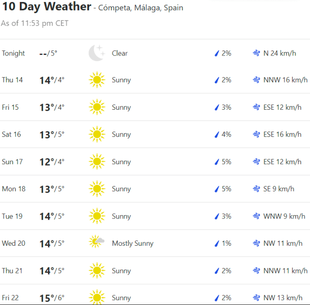 Local Weather: https://www.accuweather.com/en/es/torre-del-mar/306652/weather-forecast/306652