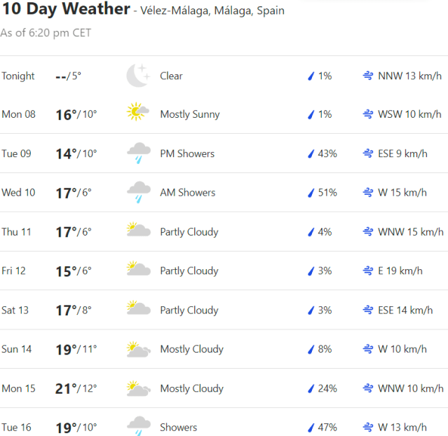 Local Weather: https://www.accuweather.com/en/es/torre-del-mar/306652/weather-forecast/306652