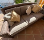For Sale: 3 seater garden seat. In excellent condition. All cushions have been recovered in water resistant material. 70€. Gill, Almayate Bajo, mob 674248101 (after 10am)