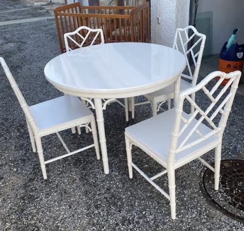 – White coated bamboo table with glass top with 4 chairs 110 x 76cms 30€