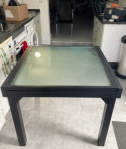 90 x 90cm. Extended. 90 x 180 cm. Currently in Nerja garden Ctr 400 euros