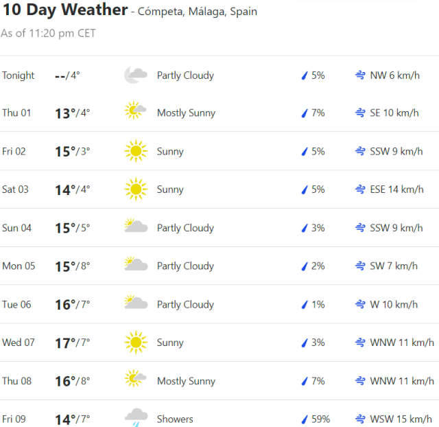 Local Weather: https://www.accuweather.com/en/es/torre-del-mar/306652/weather-forecast/306652