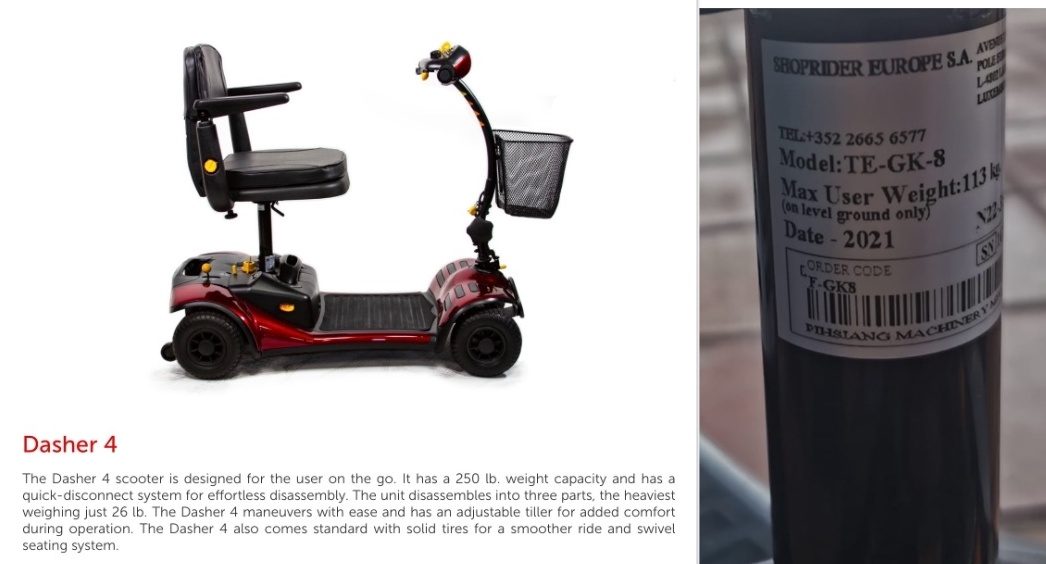 For Sale: Shoprider Dasher 4 Mobility Scooter (2021)