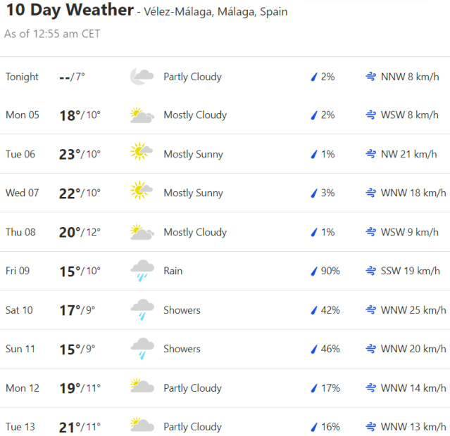 Local Weather: https://www.accuweather.com/en/es/torre-del-mar/306652/weather-forecast/306652