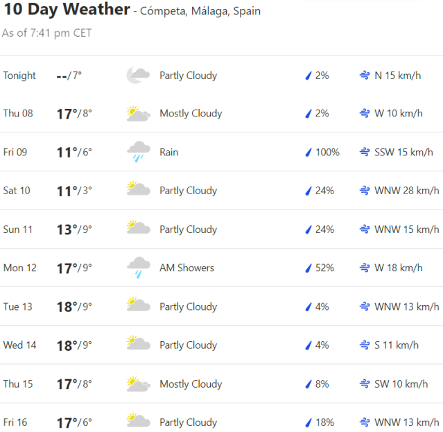 Local Weather: https://www.accuweather.com/en/es/torre-del-mar/306652/weather-forecast/306652