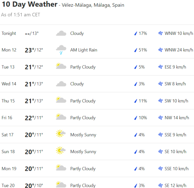 Local Weather: https://www.accuweather.com/en/es/torre-del-mar/306652/weather-forecast/306652