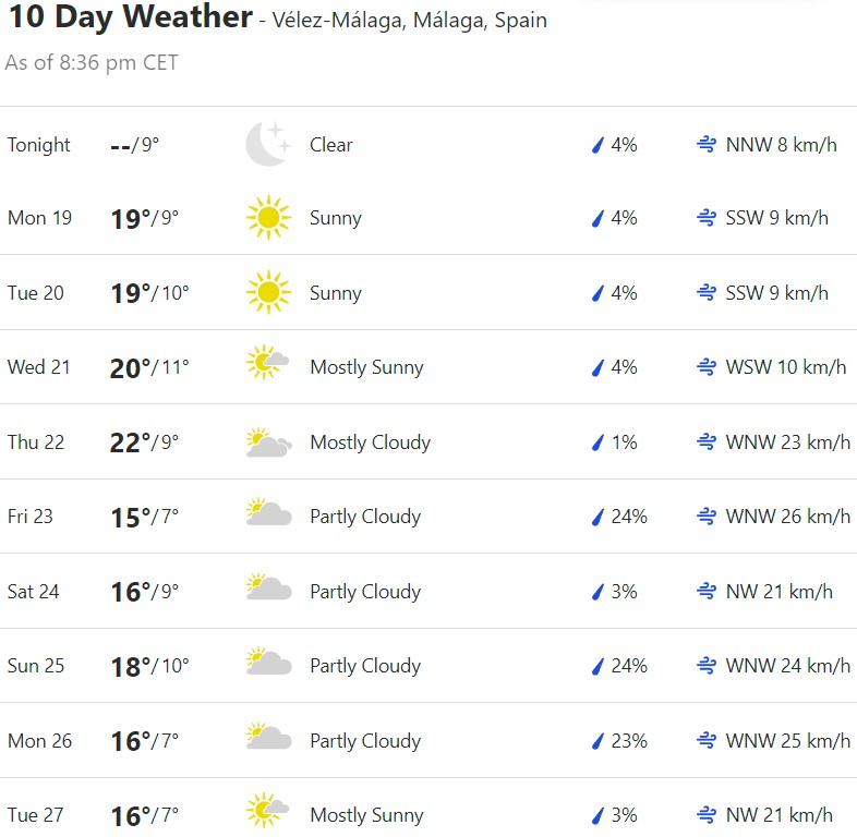 Local Weather: https://www.accuweather.com/en/es/torre-del-mar/306652/weather-forecast/306652