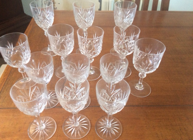 For Sale: Glasses. 14 Assorted Irish crystal red and white wine glasses. €25 but open to offers, buyer collects. Karen, Nerja, Fuente del Baden.