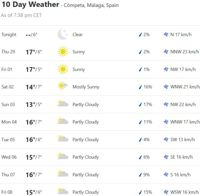 Local Weather: https://www.accuweather.com/en/es/torre-del-mar/306652/weather-forecast/306652