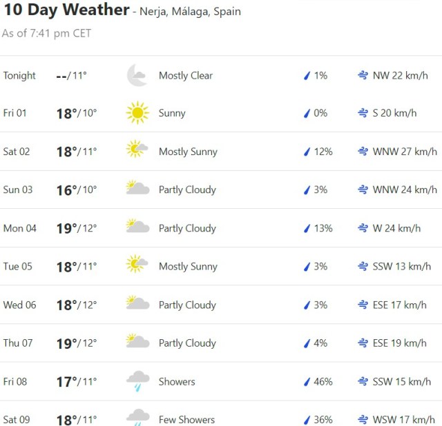 Local Weather: https://www.accuweather.com/en/es/torre-del-mar/306652/weather-forecast/306652