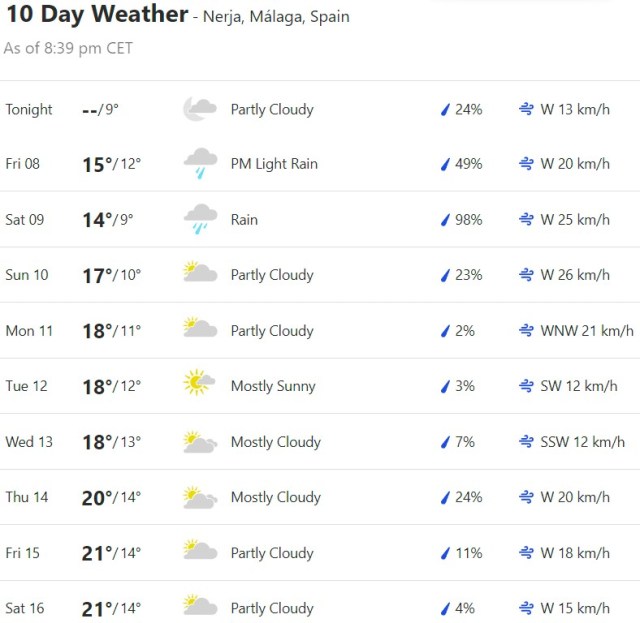 Local Weather: https://www.accuweather.com/en/es/torre-del-mar/306652/weather-forecast/306652