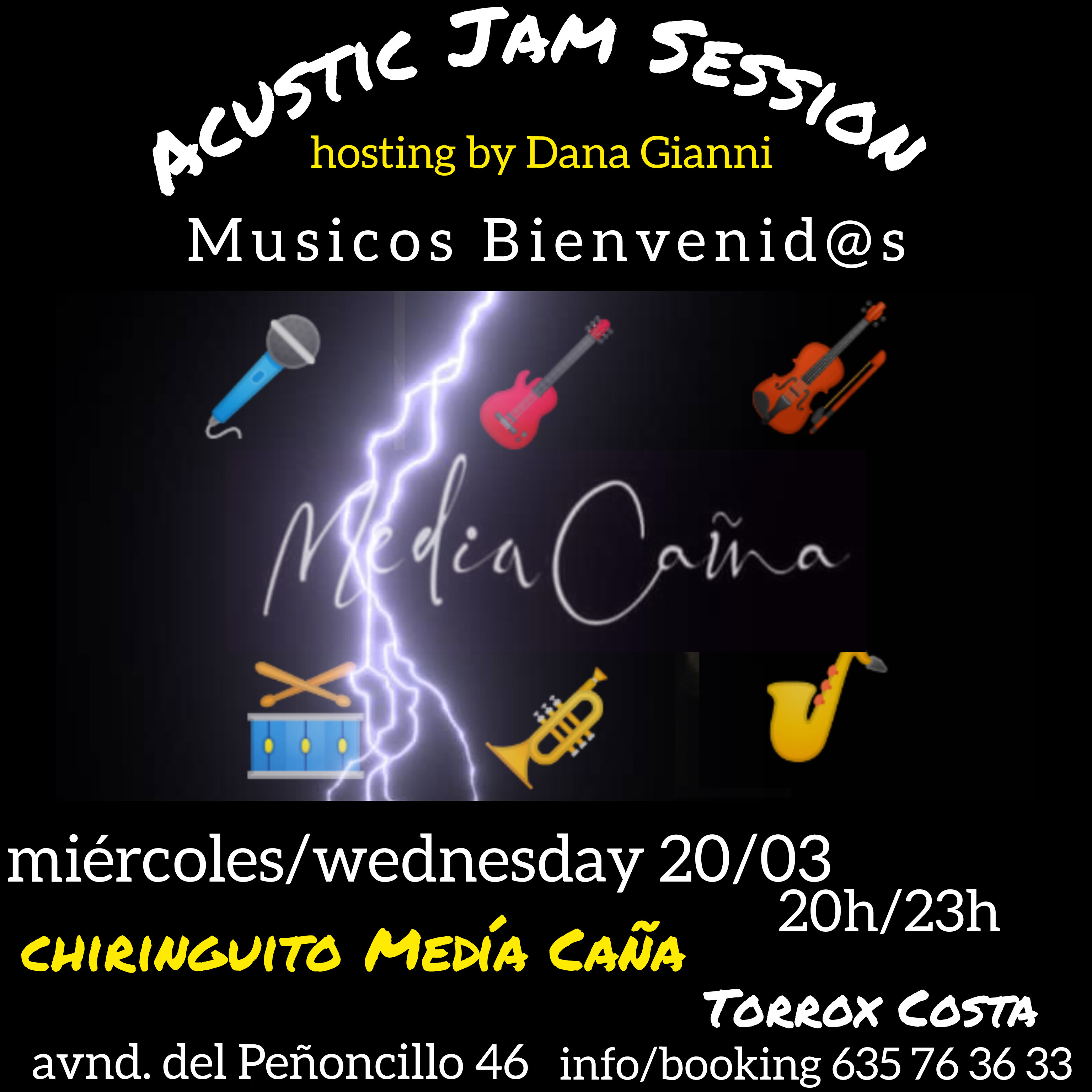 Jam Session with Dana & Gianni: March Wednesday 20 from 8pm to 11pm, we are waiting for you at the Medía Caña chiringuito for a creative Jam Session hosted by Dana & Gianni, if you are a musician bring your instrument you will be welcome. Good environment, good food and drinks. Reserve and info at +34 635763633 (Avenida del Peñoncillo 46 Torrox Costa)