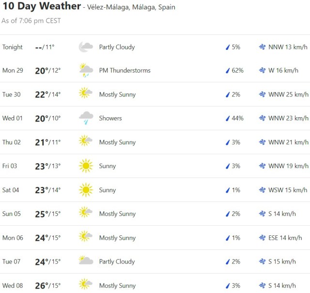 Local Weather: https://www.accuweather.com/en/es/torre-del-mar/306652/weather-forecast/306652