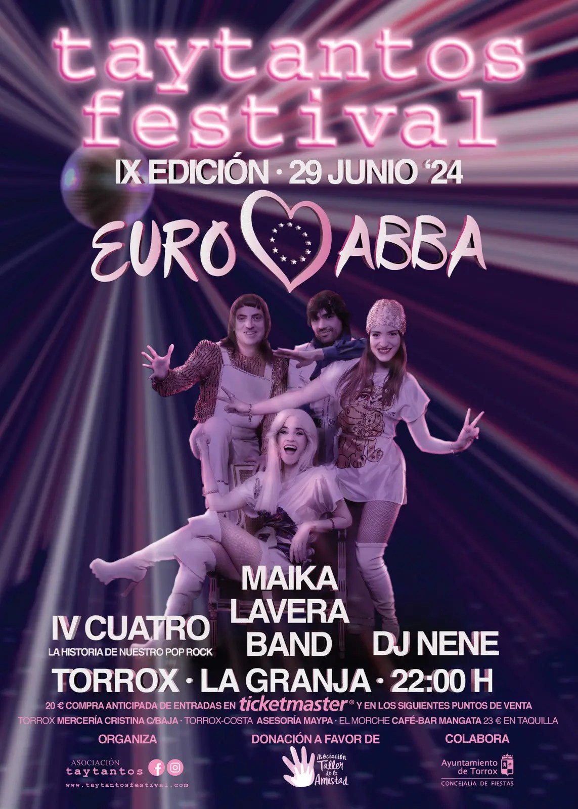 The IX Taytantos Festival of Torrox – ABBA tribute: Sat, 29 June from 10pm. La Granja complex, Torrox