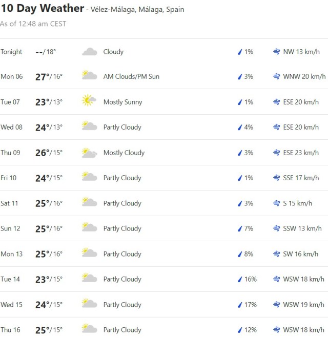 Local Weather: https://www.accuweather.com/en/es/torre-del-mar/306652/weather-forecast/306652