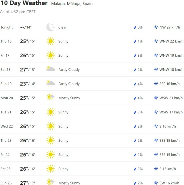 Local Weather: https://www.accuweather.com/en/es/torre-del-mar/306652/weather-forecast/306652