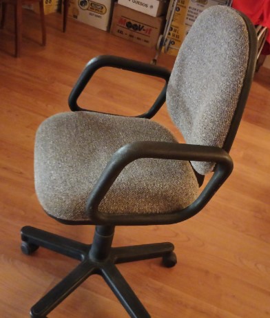 – Office chair with wheels, grey material, excellent condition, 30€.