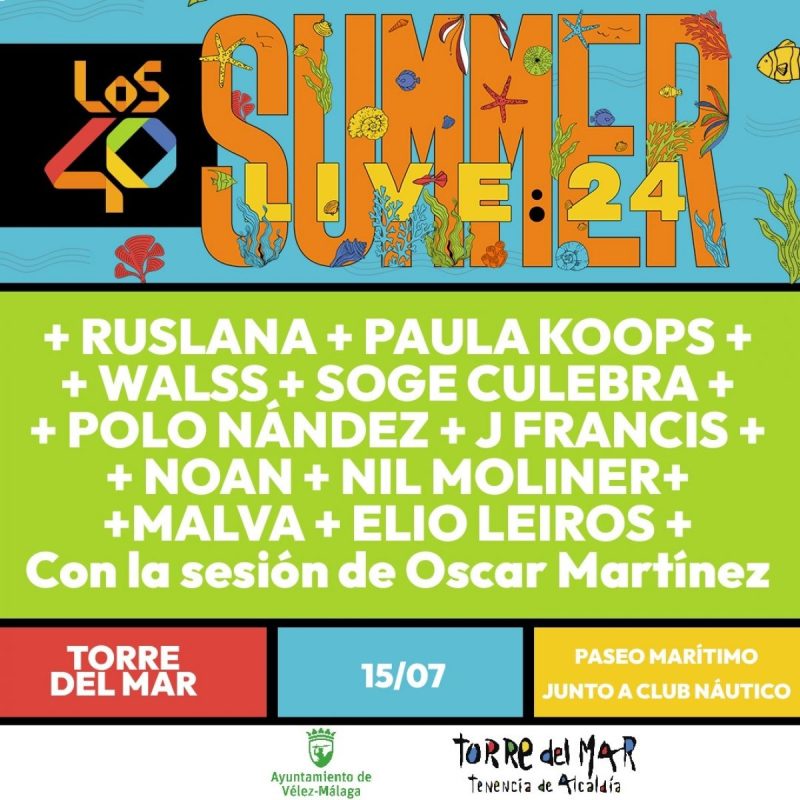 The touring music festival held for the last 9 years by Los 40 Principales. The free festival will take place on Monday 15th July in the car park of the Club Náutico de Torre del Mar, on the Paseo Marítimo de Levante. The event will start at 22:00 and for now the line-up consists of Nil Moliner, Paula Koops, Walls, Soge Culebra, Polo Nández, J Francis, Noan, Malva and Elio Leiros and Ruslana with entertainment by dj Óscar Martínez.