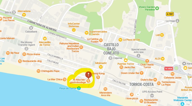 Located mid-way down the Torrox Costa Paseo Maritimo, next to the children’s playground near the tourist info booth. Tel. 628009560 FB