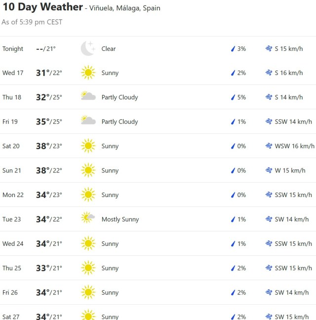 Local Weather: https://www.accuweather.com/en/es/torre-del-mar/306652/weather-forecast/306652