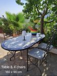 For Sale: Table & 4 chairs. Unique heavy Andalucían/Moroccan table 180cm x 90cm (while most tables are round or rectangular, this one is more ovaltine with 4 firmly chairs (in the same style) in good condition. €300