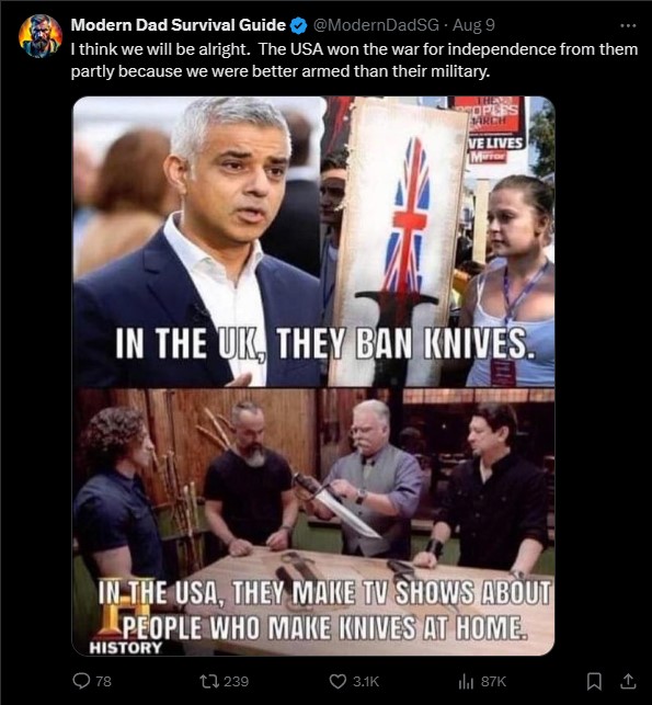 – This bonehead threatens to EXTRADITE and imprison American citizens over online social media posts. It generated a lot of feedback on the X platform, some of it quite humorous. Some examples below. Click on videos to play, click on images to enlarge.