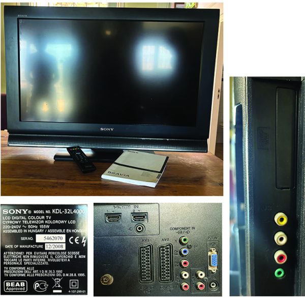 – Sony BRAVIA flat screen TV. (Mfg: Dec. 2008)