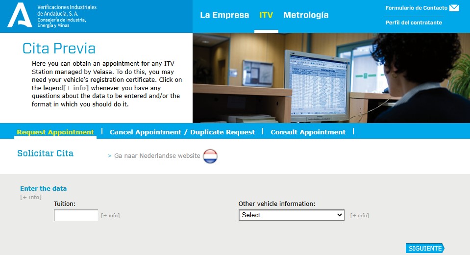 – To facilitate the process for users from the Netherlands, the Veiasa appointment website has a version in Dutch, accessible through a specific link; and clicking on the icon with the flag of the Netherlands on the main page (https://www.itvcita.com/Welcome.do) {pic}.