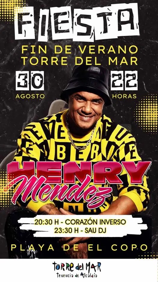 – We will kick off at 20:30 with a concert by the local pop group, Corazón Inverso. From 22:00 hours, the main attraction will be the Dominican Henry Méndez, one of the top representatives of reggaeton and merengue. At around 11:30 p.m., the music continues with Sau DJ, who will close this end-of-summer party, which will also include videos and a fireworks display.
