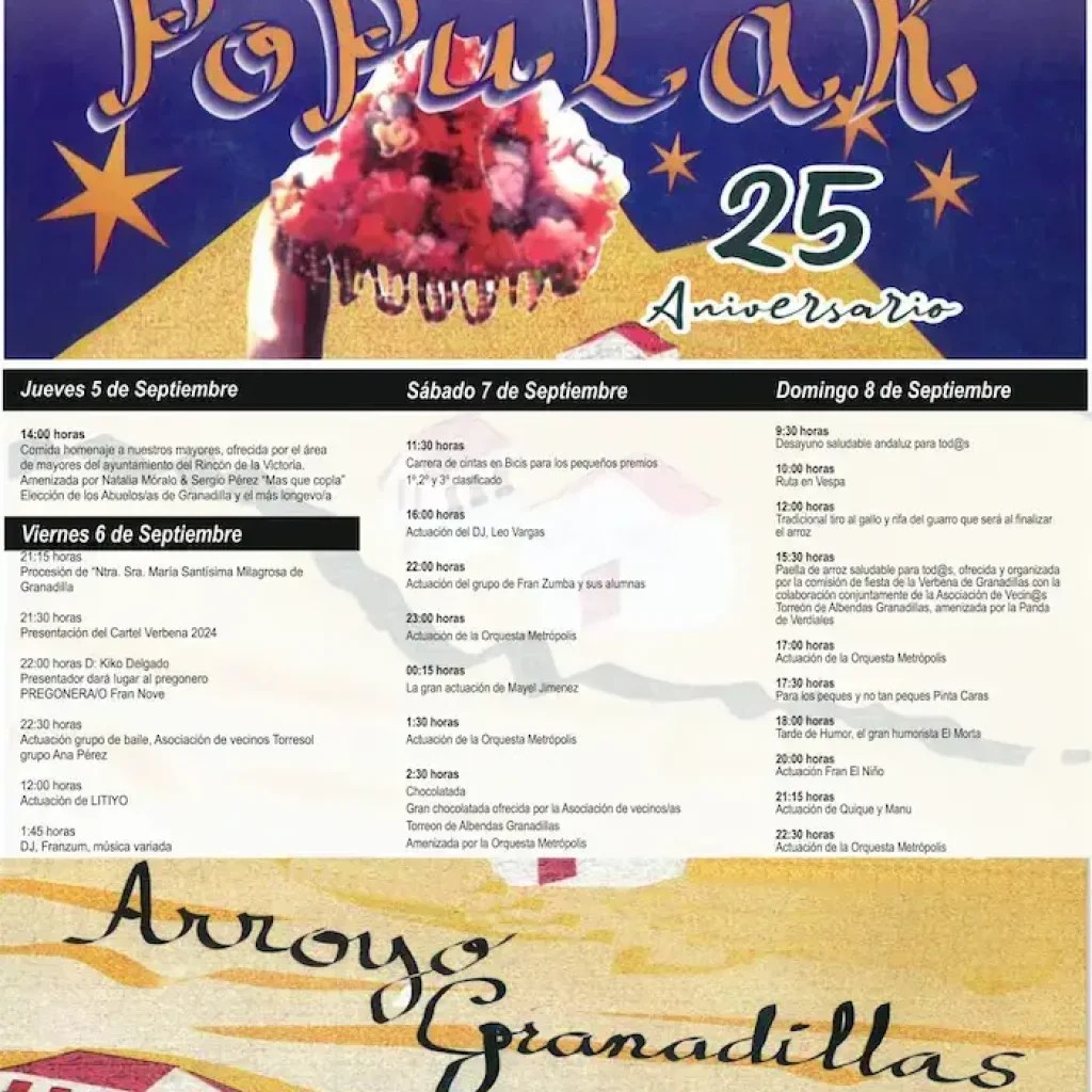 Source, Spanish: https://www.axarquiaplus.es/rincon-de-la-victoria-celebrara-la-verbena-granadillas-del-5-al-8-de-septiembre-con-una-programacion-especial-con-motivo-de-su-25-aniversario/
