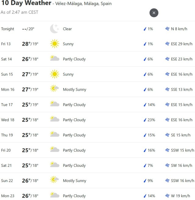 Local Weather: https://www.accuweather.com/en/es/torre-del-mar/306652/weather-forecast/306652