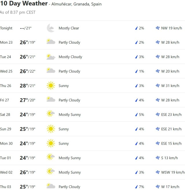 Local Weather: https://www.accuweather.com/en/es/torre-del-mar/306652/weather-forecast/306652