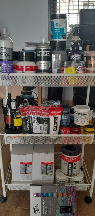 I am selling a huge selection of acrylic art paints, varnishes and auxiliary items. All are brand new.