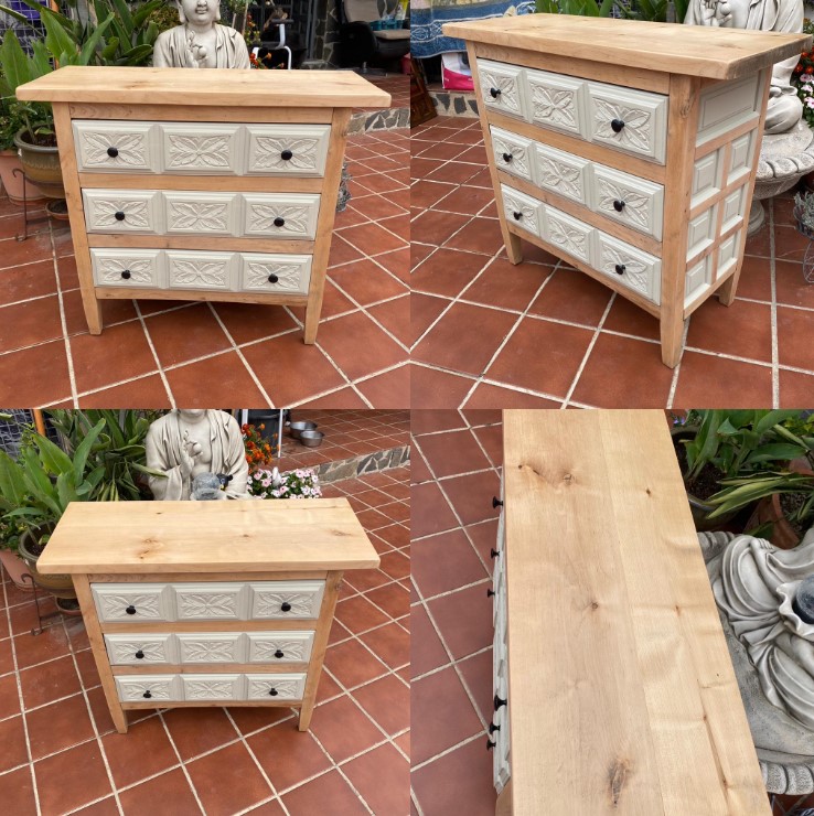 – Castilian chest of drawers Solid natural wood (waxed) Beige color New black knobs Measurements 90 x 36 x 82cms Price 145€