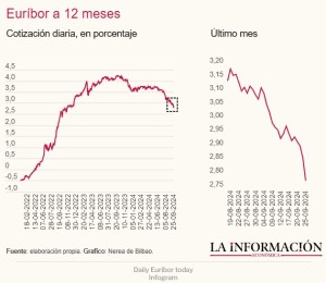 – The value of the Euribor today falls again to 2.776%, continuing its downward trend and marking a new low since 2023.