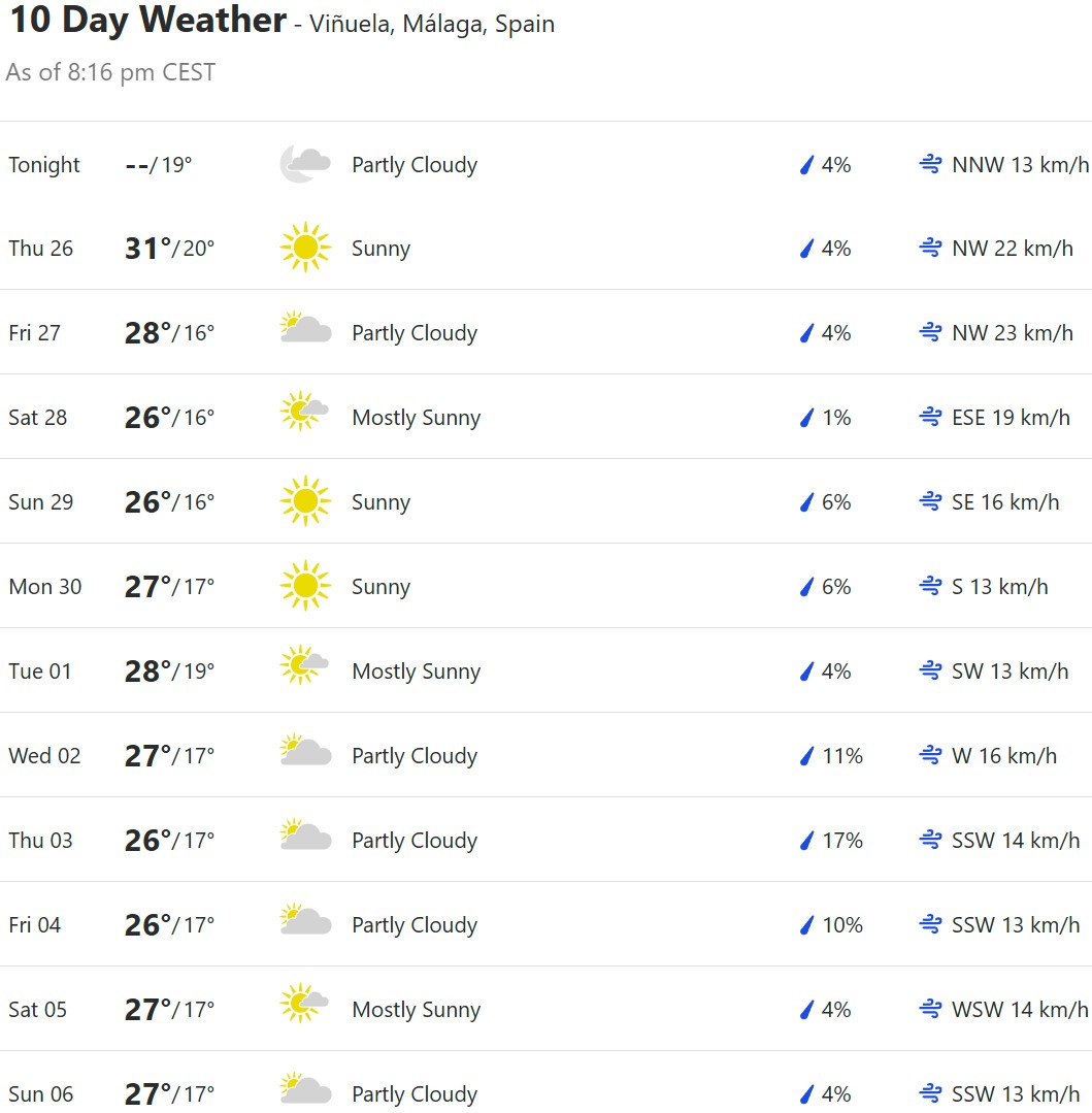 Local Weather: https://www.accuweather.com/en/es/torre-del-mar/306652/weather-forecast/306652