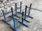 – 4x Sturdy I-Beam Metal Stands. Ideal for supporting worktables, benches, etc. 2 are 87cms tall and 2 are 108cms.