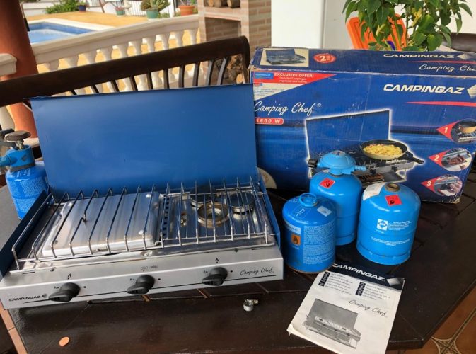For Sale: Camping stove with 3 bottles (1 empty), in excellent condition. €25. Buyer collects. Sam, La Viñuela,
