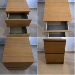 – Bedside cabinet in pine effect wood, two drawers which “run” perfectly. Surprisingly heavy for its size. Excellent condition no scratches or dents. 55cms high x 40 wide x 45 deep. €20