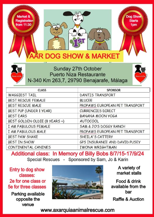 AAR’s kennel and vet bills for the last 3 months were over 12,000 euros so PLEASE come along to raise much needed funds and help save more lives.
