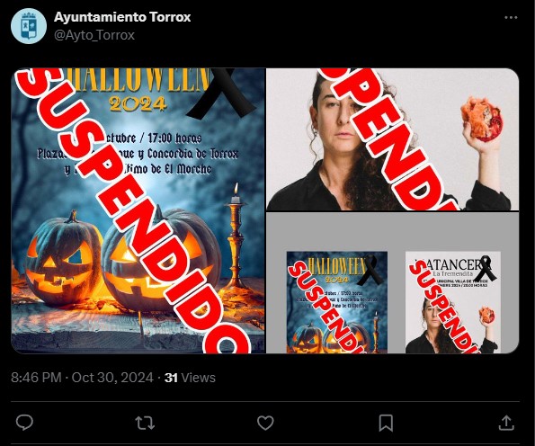 CANCELLED– Torrox & El Morche Halloween 31/10: Source, https://x.com/Ayto_Torrox/status/1851712280213233724