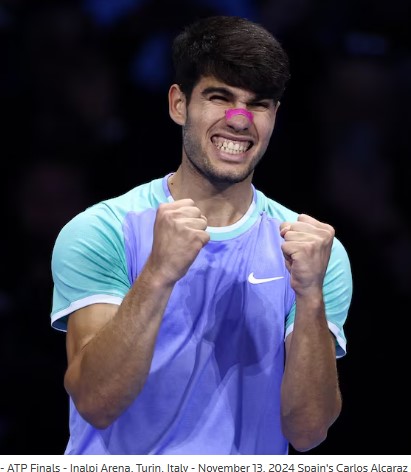 – Third seed Alcaraz, bidding to win the title for the first time, looked far sharper than during his opening group match which ended in a straight-sets defeat by Norway’s Casper Ruud. Photo: Guglielmo Mangiapane. Full article: https://www.reuters.com/sports/tennis/alcaraz-back-track-atp-finals-with-win-over-rublev-2024-11-13/