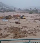 Benamargosa river overflows and begins to flood the town: {Translation}