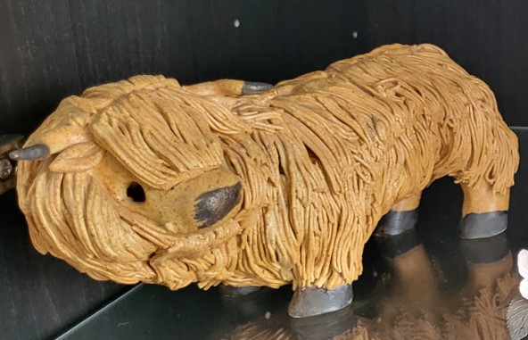 – Bone china/ceramic/stone animal. Highland Cow 15 Euros