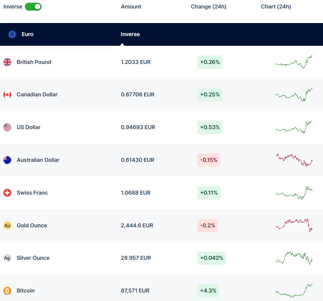 – Big banks including JPMorgan and Deutsche Bank reckon a drop to parity could happen, depending on the extent of tariffs. Tax cuts could also fuel U.S. inflation and limit Federal Reserve rate cuts, making the dollar potentially more attractive than the euro. Full article: https://www.reuters.com/markets/currencies/why-is-euro-falling-could-it-hit-1-2024-11-13/