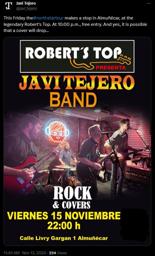 Javi Tejero Band: Friday, 15 Nov, 10pm