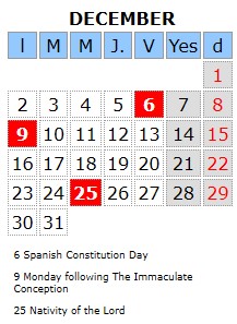 Extra-long bridge holiday next month: Friday 6 Dec, is Constitution Day. Monday 9 Dec, is Immaculate Conception Holiday. Both are national public holidays in Spain. So that results in a 4 day holiday. DigameXtra will be closed for these 2 holidays. Some people will take off on Thursday the 5th and the following Tuesday the 10th as well, making a 6 day bridge holiday. Ref: https://publicholidays.es/2024-dates/
