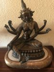 Tibetan in origin she is the Goddess of Compasión, Protection,Wisdom and Guidance. I think she is the Green Tara cast in mixed metals of Bronze,Copper and Brass. 5.5 kilos and 40 cms high. Comes with plinth. €200
