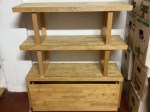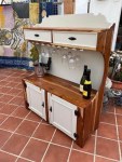– Drinks station with 2 drawers handing space for glasses. Beige colour with natural sanded wood finished with danish oil. Black metal handles. Measurements 107 x 43 x 133ms Price 110€