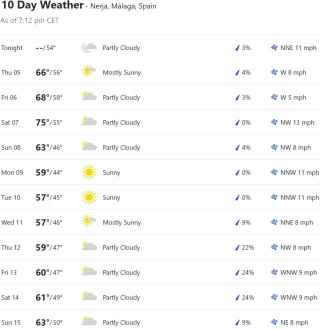Local Weather: https://www.accuweather.com/en/es/torre-del-mar/306652/weather-forecast/306652